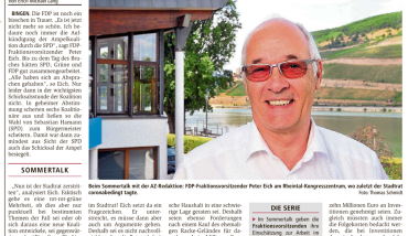 Bis die Frage nach einer stabilen Mehrheit im Rat beantwortet ist, sei es wichtig für eine gute Zusammenarbeit, dass die Fraktionen sich an Absprachen hielten. Das sei nun gleich mal gescheitert, als die CDU den Vorstoß der FDP zu einer Wohnungsbaugesellschaft dann doch nicht mitgetragen habe, obwohl im Vorfeld anderes abgesprochen gewesen sei. Verbunden sieht sich die FDP mit der anderen, dreiköpfig besetzten Stadtratsfraktion: der FWG. Hier gebe es thematisch viel Einigkeit, ob Verschuldung, ÖPNV oder die Netzgesellschaft. Also vorerst „wechselnde Mehrheiten“ im Stadtrat? Eich setzt da ein Fragezeichen. Er unterstreicht, es müsse dann aber auch um Argumente gehen. Deshalb sei es nicht nachvollziehbar, dass die Ratsmehrheit ein Vorkaufsrecht für die Villa Herter betreiben wollte, ohne für den Beschluss das nötige Geld zu haben. Argumenten habe sich die Mehrheit verschlossen. „Ich bin dankbar, dass der Oberbürgermeister diesen Beschluss ausgesetzt hat.“